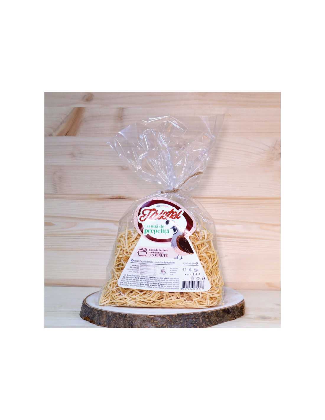Ingrediente:  faina alba de grau 480 (origine Romania), oua de prepelita 37%.