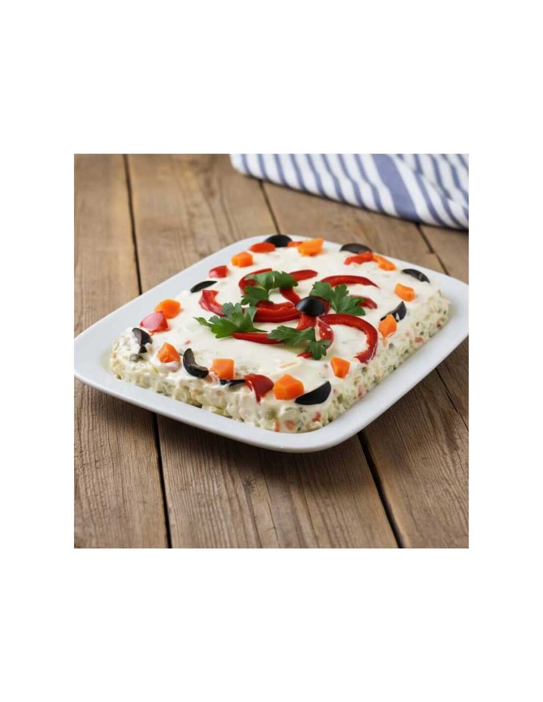 Ingrediente: cartofi, piept de pui, morcovi, pătrunjel rădăcină, țelină, murături, castraveți la oțet, mazăre, ulei de floarea soarelui, ouă, muștar, condimente, sare, piper.