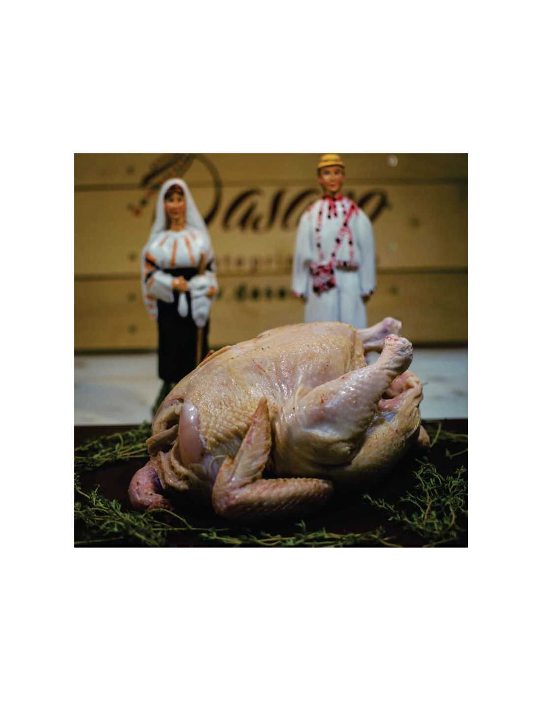Pui de tara crescut la sol, minim 90 de zile si hranit cu iarba (in perioada verii) si cu porumb, grau si floarea soarelui.